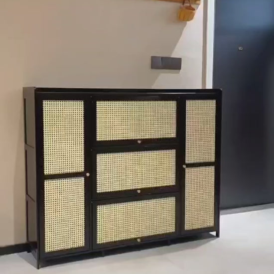 Keep your entryway neat and stylish with this spacious 26-pair wooden bamboo shoe cabinet. Strong, elegant, and perfect for organizing shoes while enhancing your home décor.