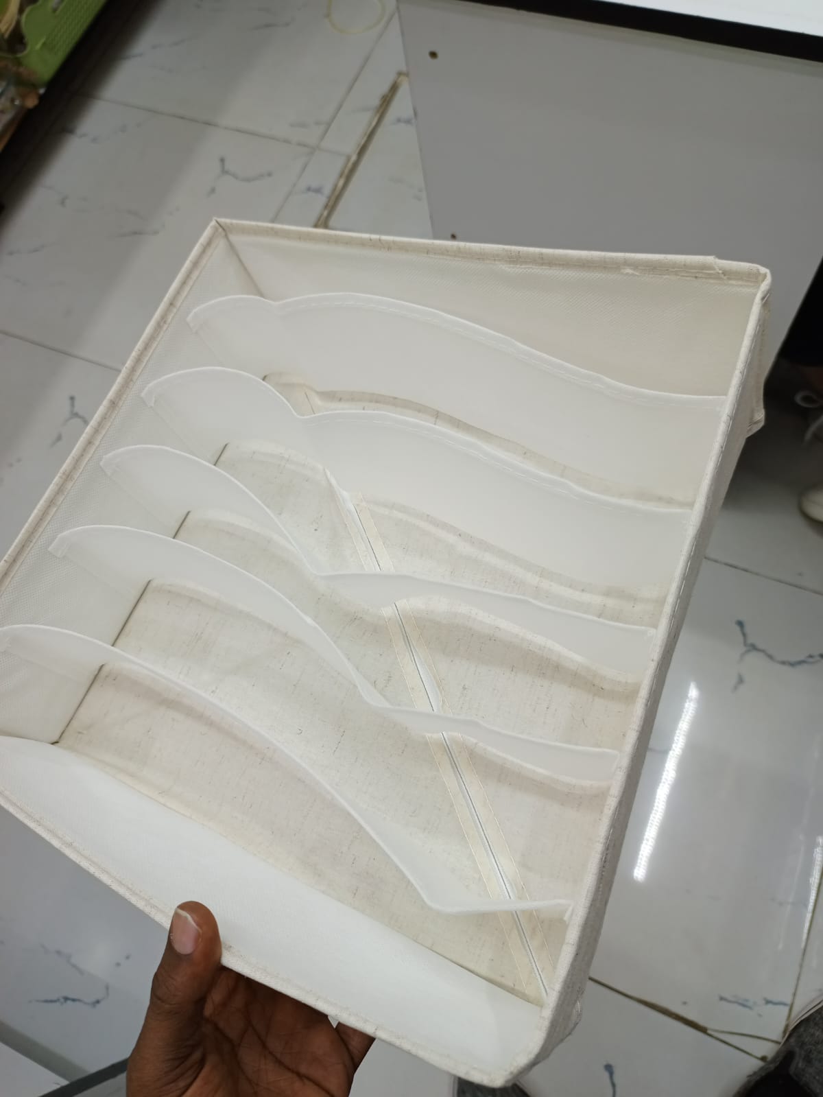A set of three foldable fabric organizers designed to keep drawers neat and tidy. Made from durable, breathable material, they are perfect for wardrobes, dressing tables, and other storage spaces.