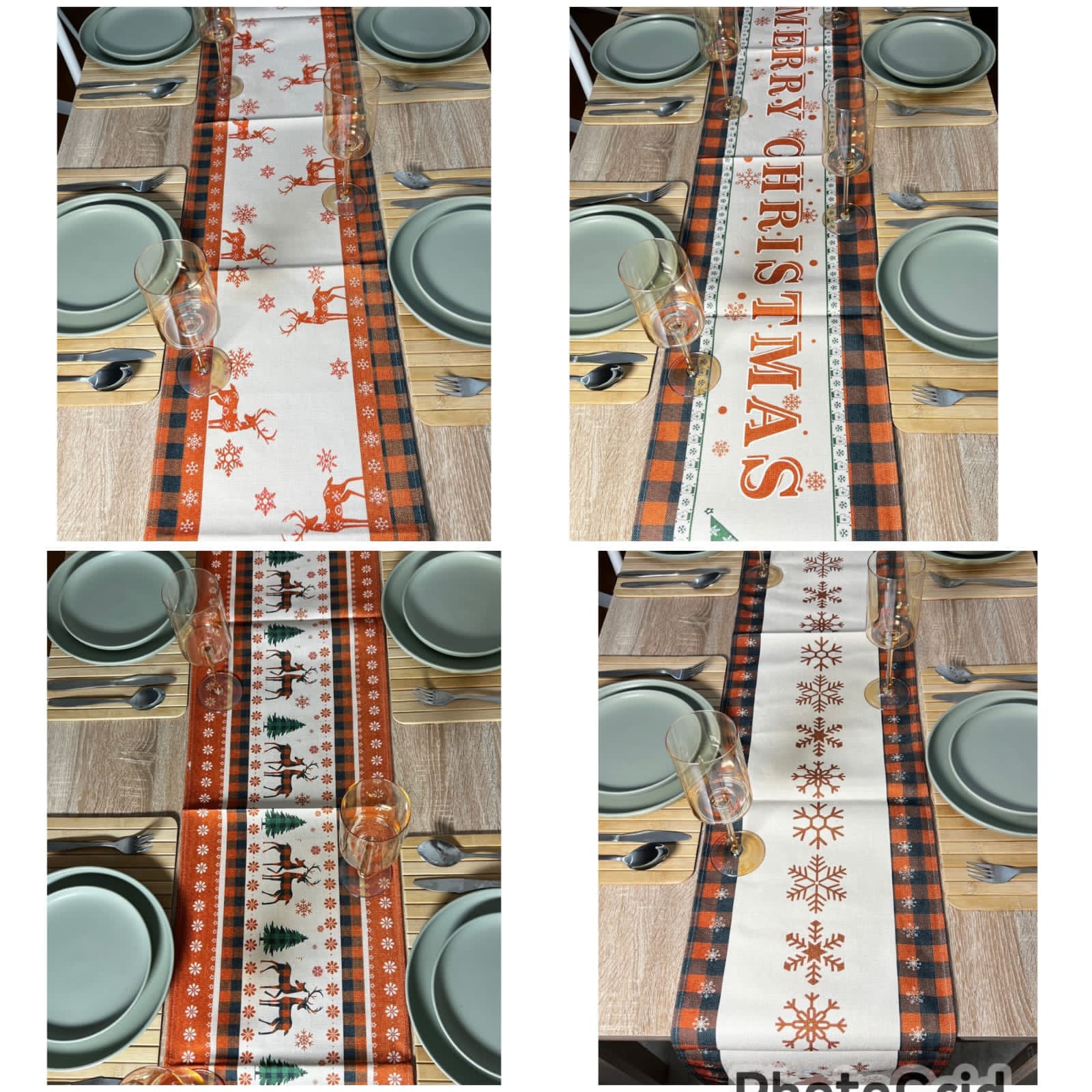 Elevate your holiday dining with this high-quality Christmas table runner. Crafted from heavy cotton and linen, it adds a touch of elegance and festive charm to your table setting.
