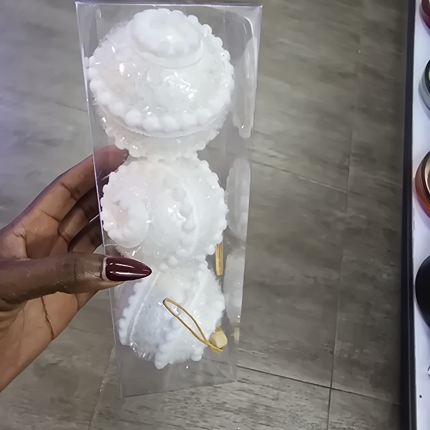 White Beaded 3pc Christmas Ball Set
