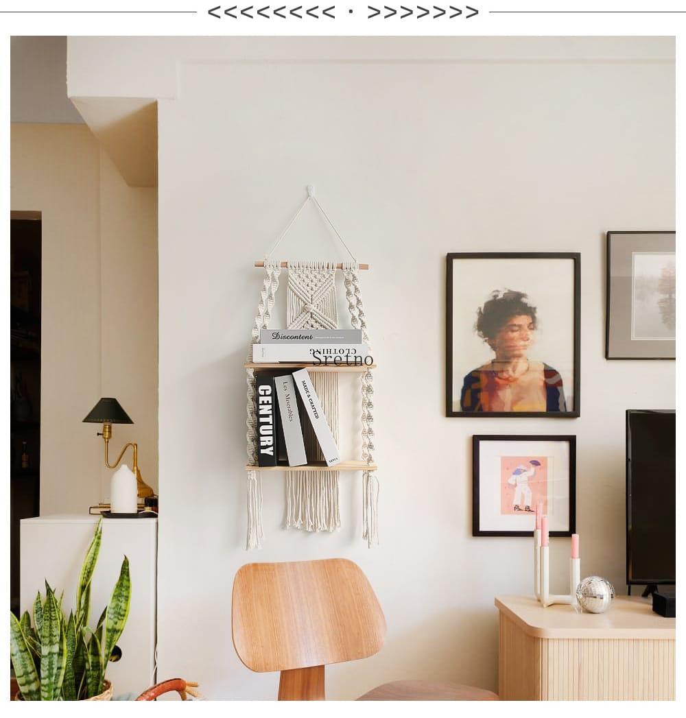 Woven Tapestry 2-Tier Bohemian Wall Hanging Floating Shelves